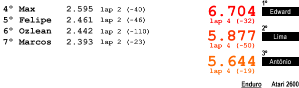 Com dois jogos clássicos de Atari 2600 abrindo a competição, quem largou na frente foram Antônio e Edward, registrando 4 pontos em medalhas de ouro e bronze no Enduro e no Tennis.
